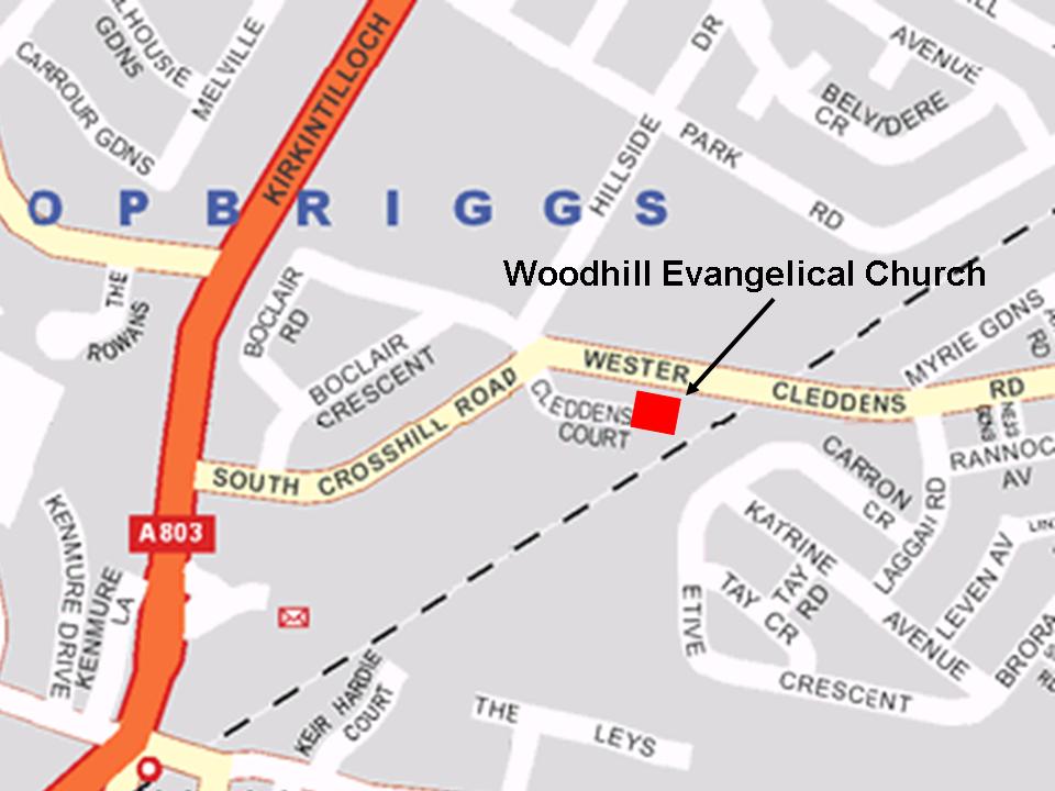 Exit at the junctions marked A803 Kirkintilloch. Follow the signs for Springburn and Kirkintilloch until you reach the sign indicating that you have reached Bishopbriggs. Continue through Bishopbriggs past the railway station (on your right) and the Triangle Centre to the set of traffic lights at South Crosshill Road.